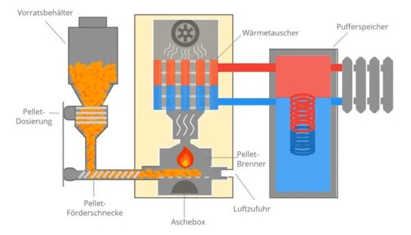 2 kg Pellets entsprechen ca. 1 Liter Heizöl.